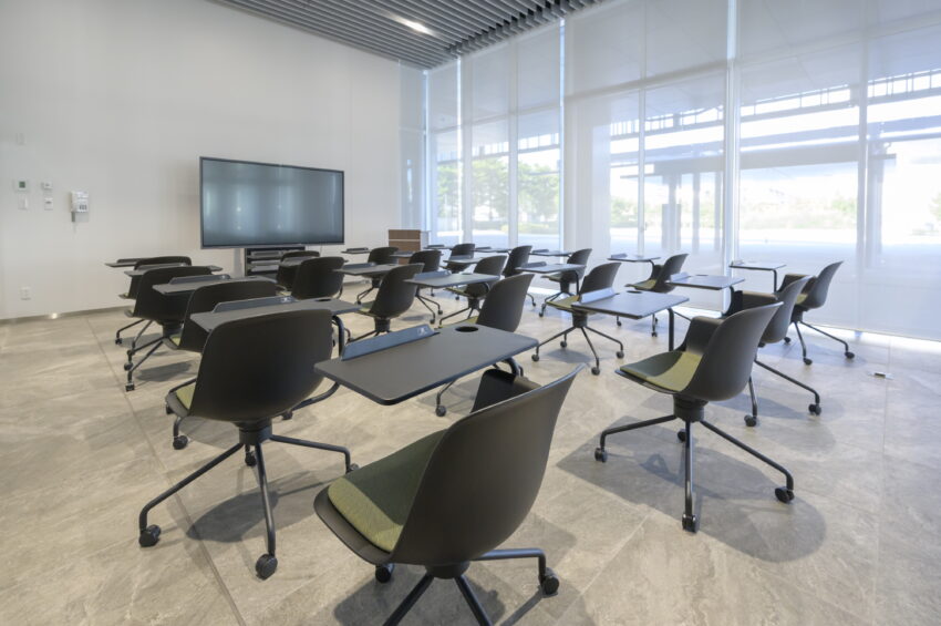 各種セミナーや小規模なイベントを開催するための収容定員20名のセミナールーム「イノベーションブース」を設置しております。三面ガラス張りの明るい室内に、86インチの多機能型モニターを常設しています。地域の企業・団体の方にも利用いただけます。