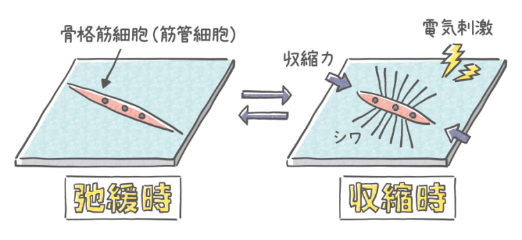 そこで私たちは、柔らかいシリコンゲルの上に置いた筋細胞が収縮したときに、ゲルに寄るシワの数や長さを分析し、そこから筋細胞の収縮力の強さを測る方法を開発しました。机上に広げたティッシュペーパーの上に手を置いて、指に力を加えてたぐり寄せた時、力の強さによってティッシュに生じるシワの数や長さは変わりそうですよね?それと似ています。これまで、筋細胞の収縮力の評価が難しいこともあり、加齢などによる筋力低下を防ぐ・回復させる薬の開発は難航していました。しかし私たちが開発した方法を使えば、これも一気に進むかもしれません。