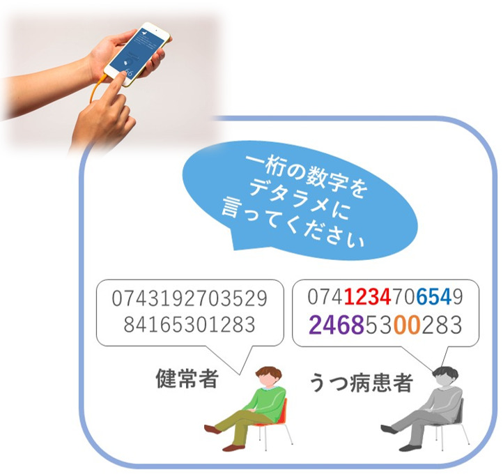 一般的に心の状態は、問診票の回答をもとに、医師の経験と技量により診断されますが、本発明では、人に乱数発声などの精神的負荷をかけ、その前後・最中にそれぞれ測定される心拍データから得られる心拍の揺らぎを用いて、心身状態を判定する点がユニークなところです。